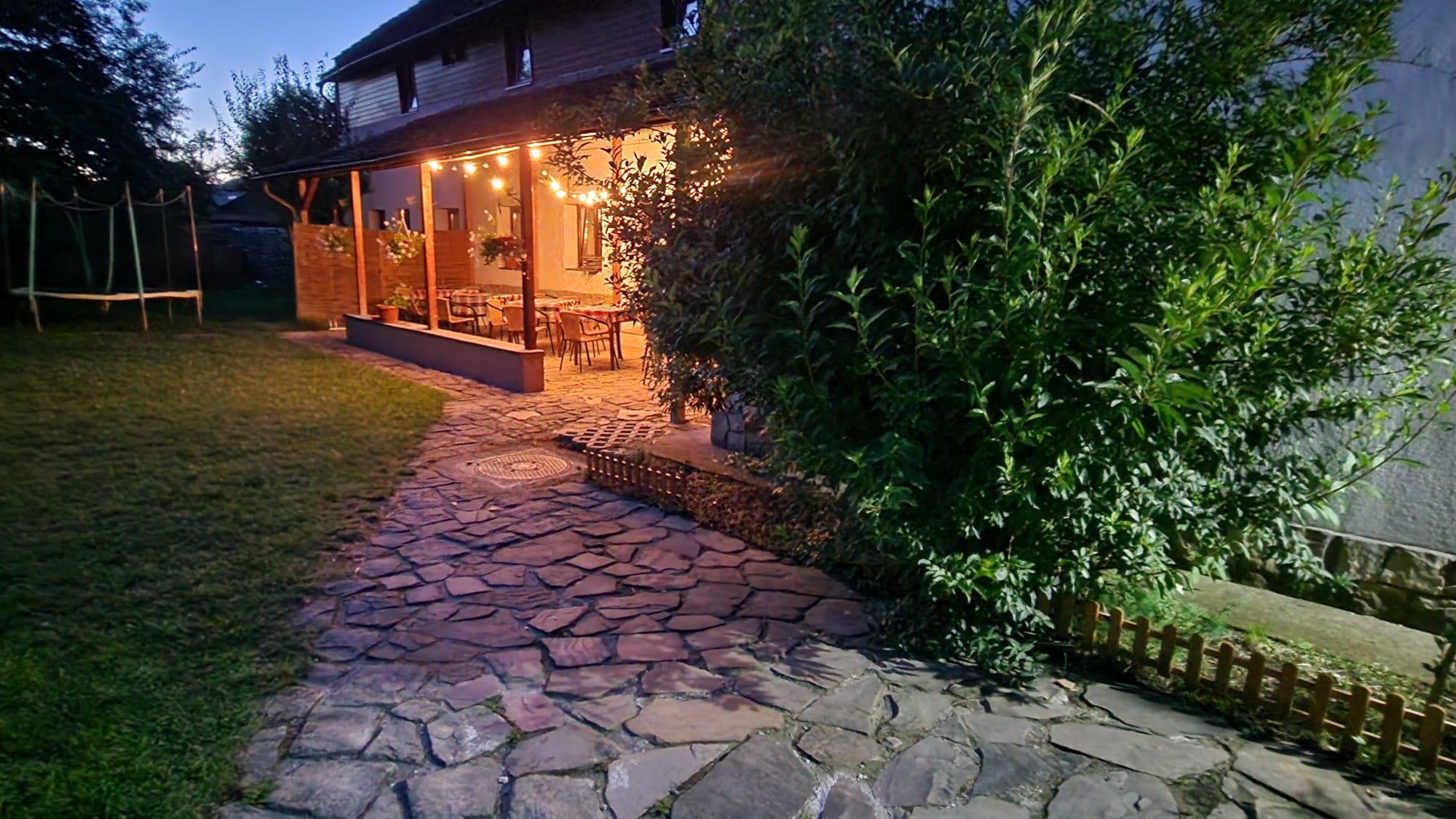 Locatia beneficiaza de o curte generoasa, spatiu verde, trambulina, porti de fotbal, de terasa acoperita, gratar.